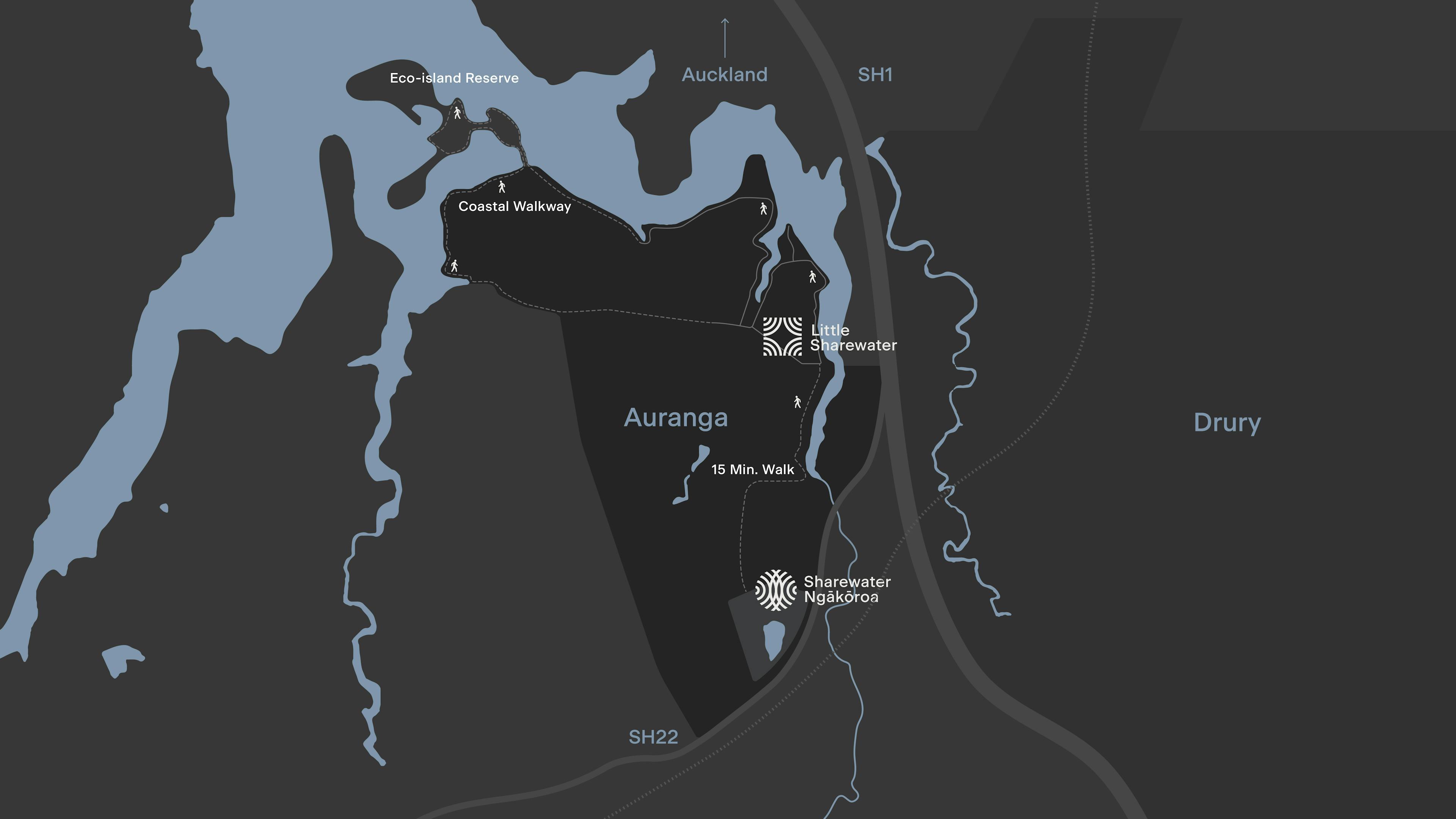 Adjacent to Drury-Karaka, sitting on the inner Manukau Harbour along the Ngākōroa stream, Sharewater is the beginning of something fresh for Auckland South.