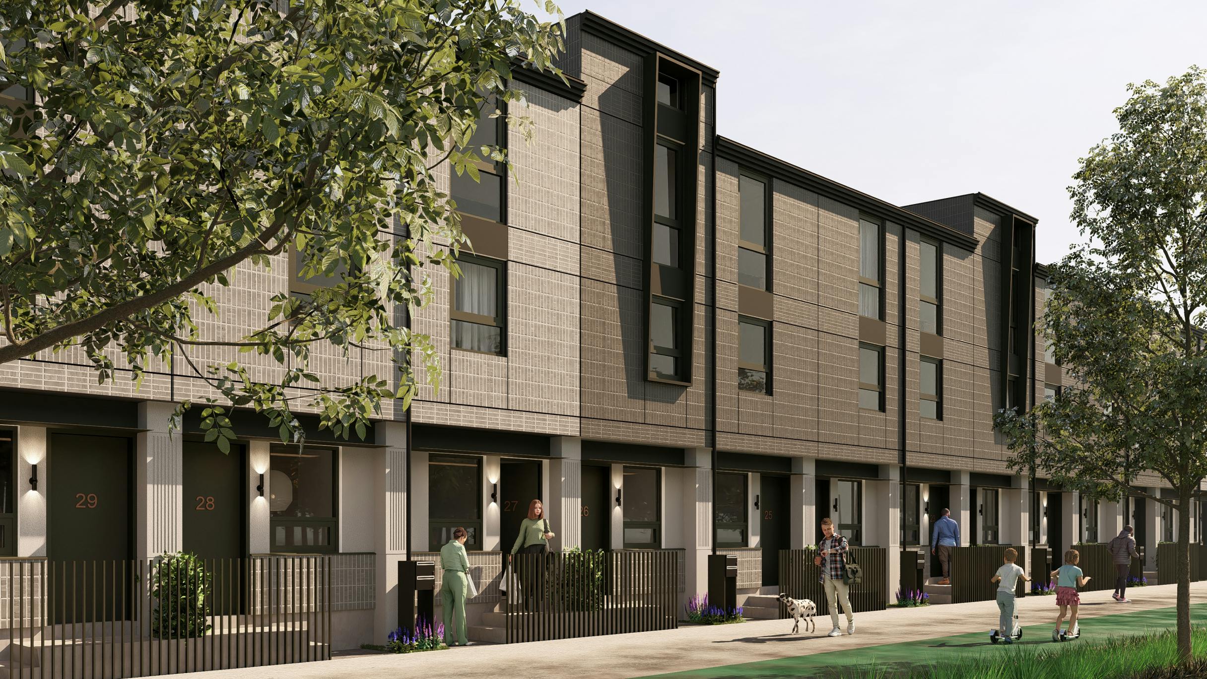 The townhouses face inwards, creating a long, gentle promenade. A shared co-living space where residents can flow outside to mix with each other and the wider Auranga community. The three storied dwellings allow for both a connection to the street and a common space to be shared and enjoyed with neighbours.